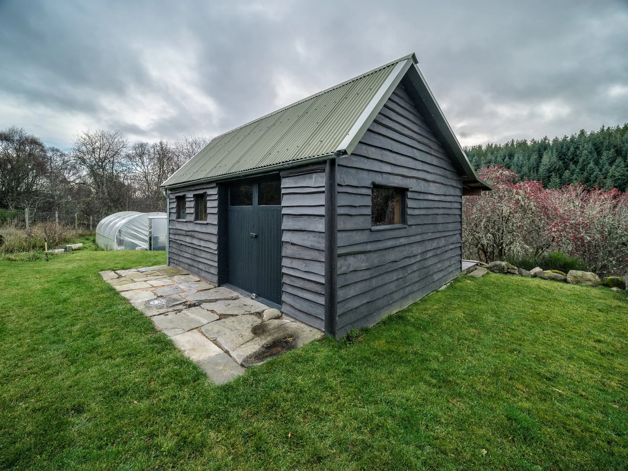 The Yellow Broom workshop was thoughtfully designed and built as a well-crafted, utilitarian structure that harmonizes with its natural surroundings. Wherever possible, reclaimed and natural materials were used throughout the construction. The finished building not only met but exceeded all expectations.